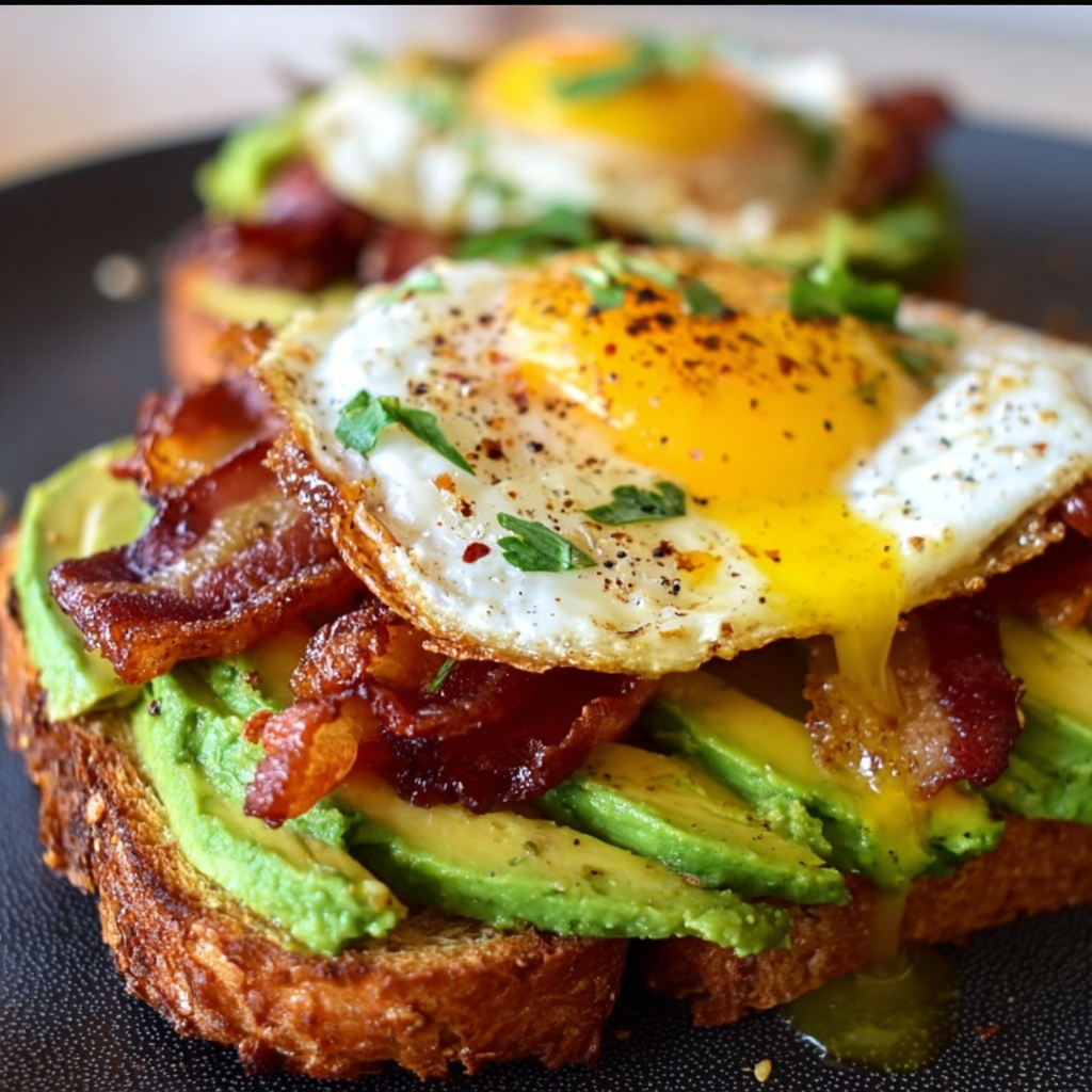 Yummy Avocado Toast with Bacon and Eggs Recipe