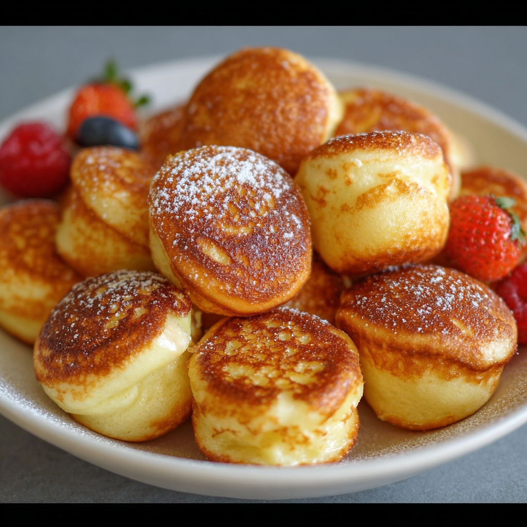 - Remove the cooked pancake poppers and arrange them on a serving plate.