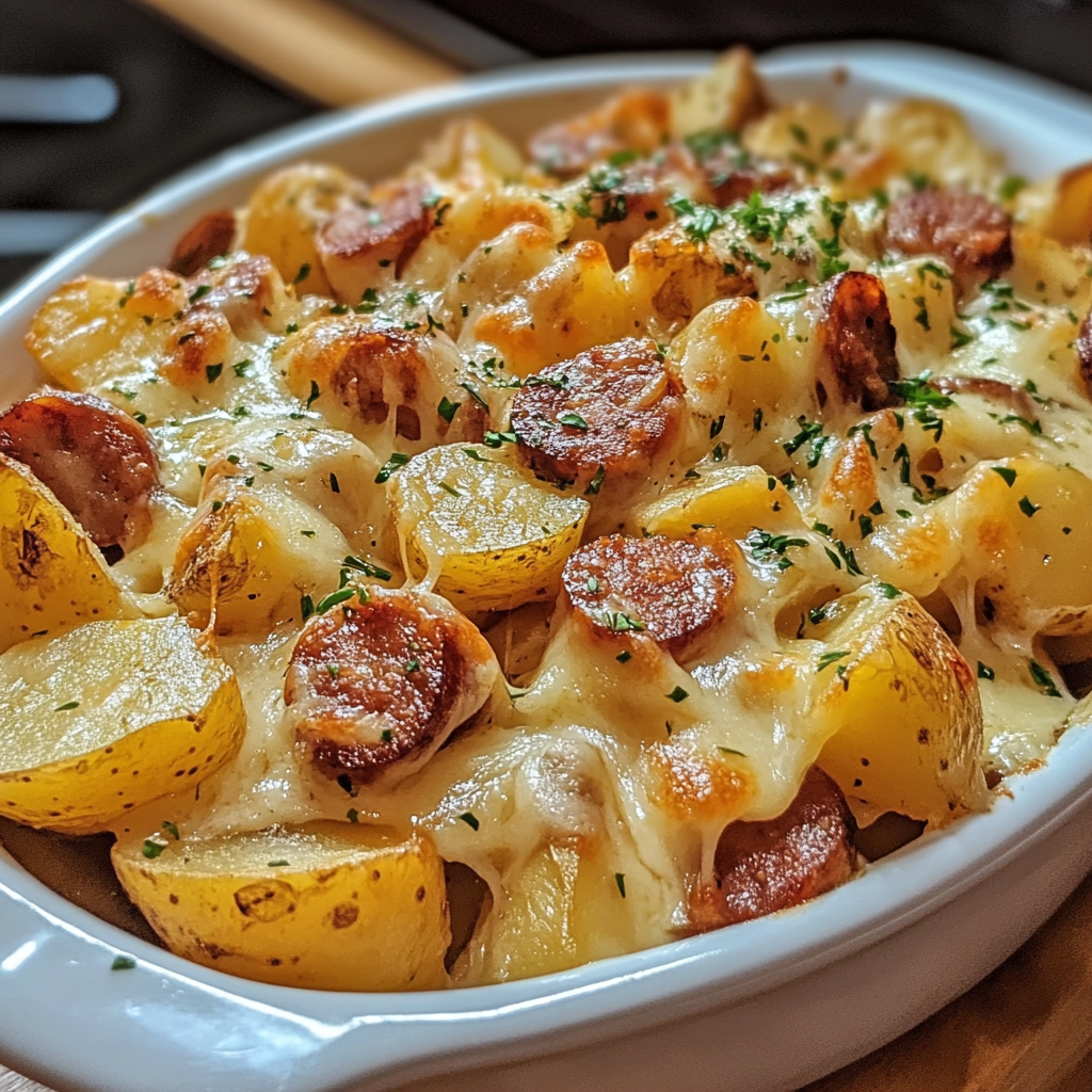 Your tummy will be thanking you after this meal! Potatoes are rich in potassium and fiber, which is great for heart health and digestion. The smoked sausage adds protein, while the cheese delivers calcium for strong bones. But remember, everything’s best enjoyed in moderation! You could always balance it out with a green salad on the side to add some freshness to your plate.