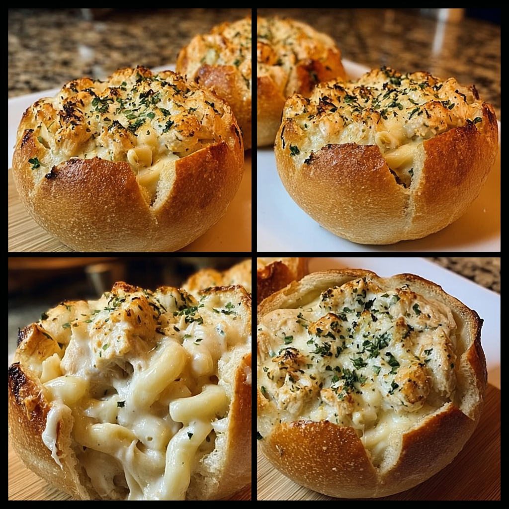 Let’s chat about the good stuff! These delicious bread bowls provide a satisfying combination of protein from the chicken and carbs from the pasta. The heavy cream and cheeses add a nice amount of calcium and fat, giving you energy, too. Just be mindful of portions if you’re keeping an eye on calories! A sprinkle of parsley on top not only adds a pop of color but also boosts your vitamins—it’s a small but mighty herb!