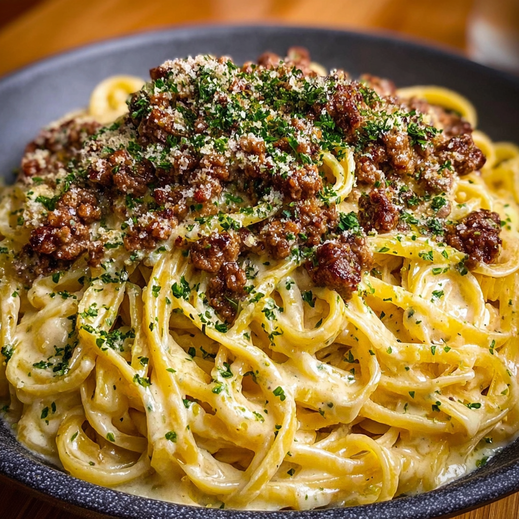 If you love cozy, creamy pasta dishes that don’t need tons of ingredients or complicated steps, you’re going to enjoy this recipe as much as I do. It’s got tender linguine swimming in a rich Parmesan cream sauce and topped with flavorful ground beef. Perfect for those evenings when you want something comforting but easy to whip up. I always find it so satisfying, and I bet you will too!