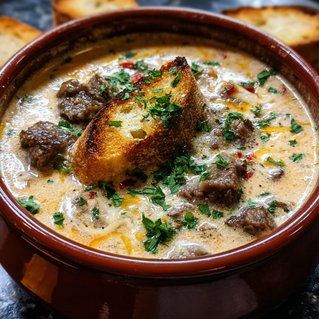 Delicious Creamy Philly Cheese Steak Soup Recipe