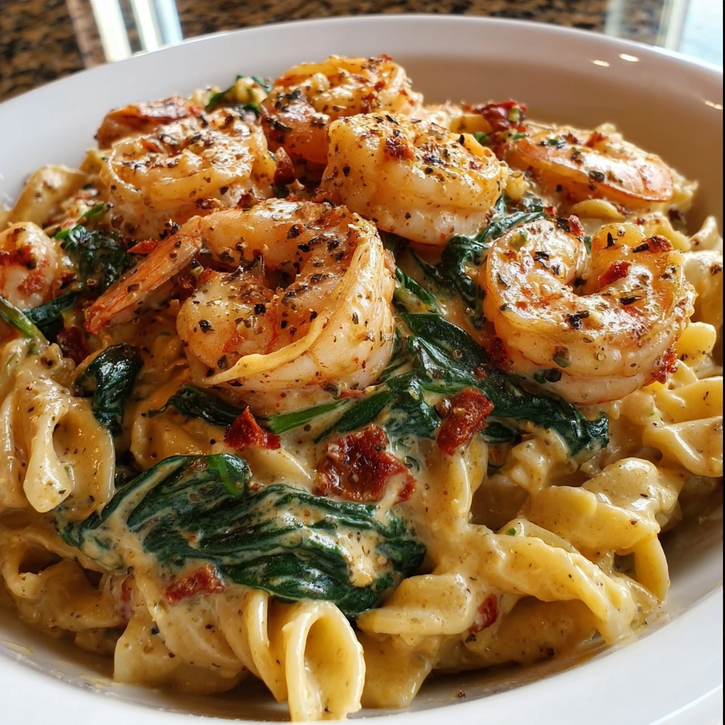 This dish isn’t just tasty—it’s got some real nutritional benefits too! Shrimp is a fantastic lean protein that’s low in calories but high in flavor, plus it provides important nutrients like selenium and vitamin B12. The fresh spinach adds a nice boost of iron, magnesium, and vitamins A and C, helping you get your greens in a delicious way. Sun-dried tomatoes bring lycopene, a powerful antioxidant, while the olive oil and butter give good fats that help keep things creamy and satisfying.