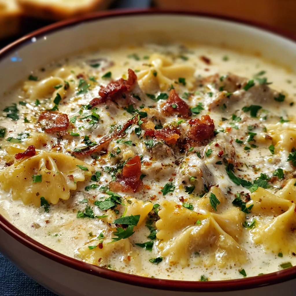 Now, I know what you might be thinking—“Lasagna soup sounds indulgent!” And it sure is deliciously creamy, but with some smart choices, it can be a balanced meal. The Italian sausage and bacon provide a good amount of protein, which helps keep you full and energized. Pasta gives you carbs for quick energy, and that chicken broth adds flavor with fewer calories. The cheeses add calcium and that wonderfully creamy texture, while the garlic and onions bring antioxidants and immune benefits. And hey, you can always toss in some veggies or fresh herbs if you want to boost the nutrition even more. It’s about enjoying comfort while thinking of your well-being!