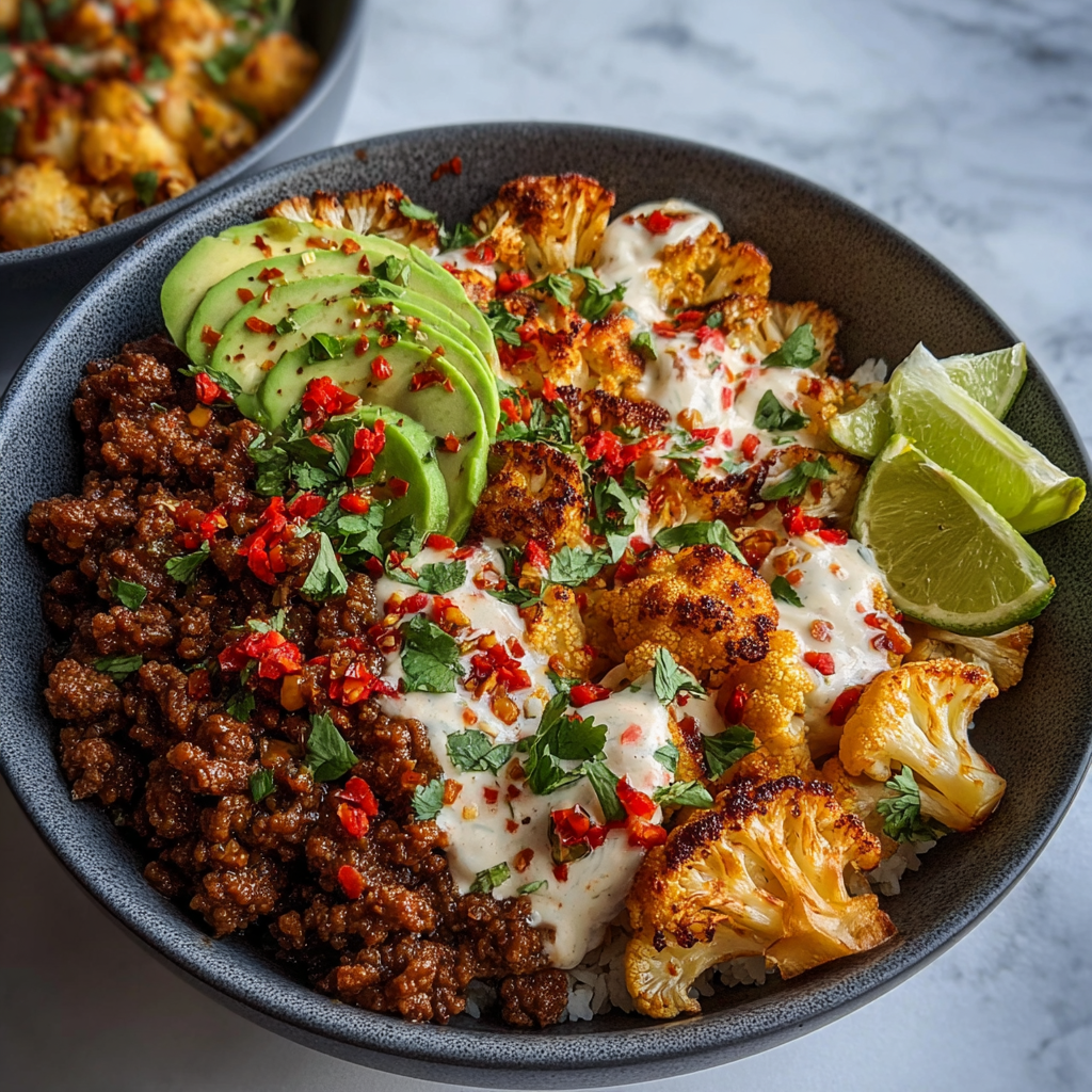You can roast the cauliflower and cook the beef a day ahead, then reheat everything before assembling the bowls. - Is this recipe suitable for meal prep?