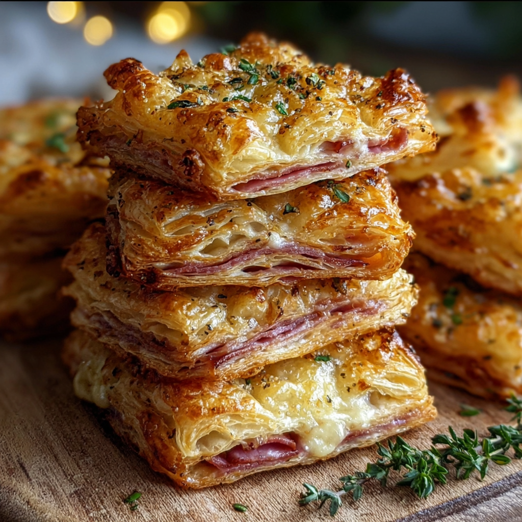 While these puff pastry bites are definitely a treat, they also have some nutritional benefits to appreciate. Ham provides a good source of protein, which helps keep you feeling full and energized. Cheese offers calcium, essential for strong bones and teeth. And fresh thyme isn’t just pretty—it has antioxidants and antibacterial properties, making this snack a tiny boost for your immune system. Just enjoy these bites with some moderation, and they can be part of a balanced diet.