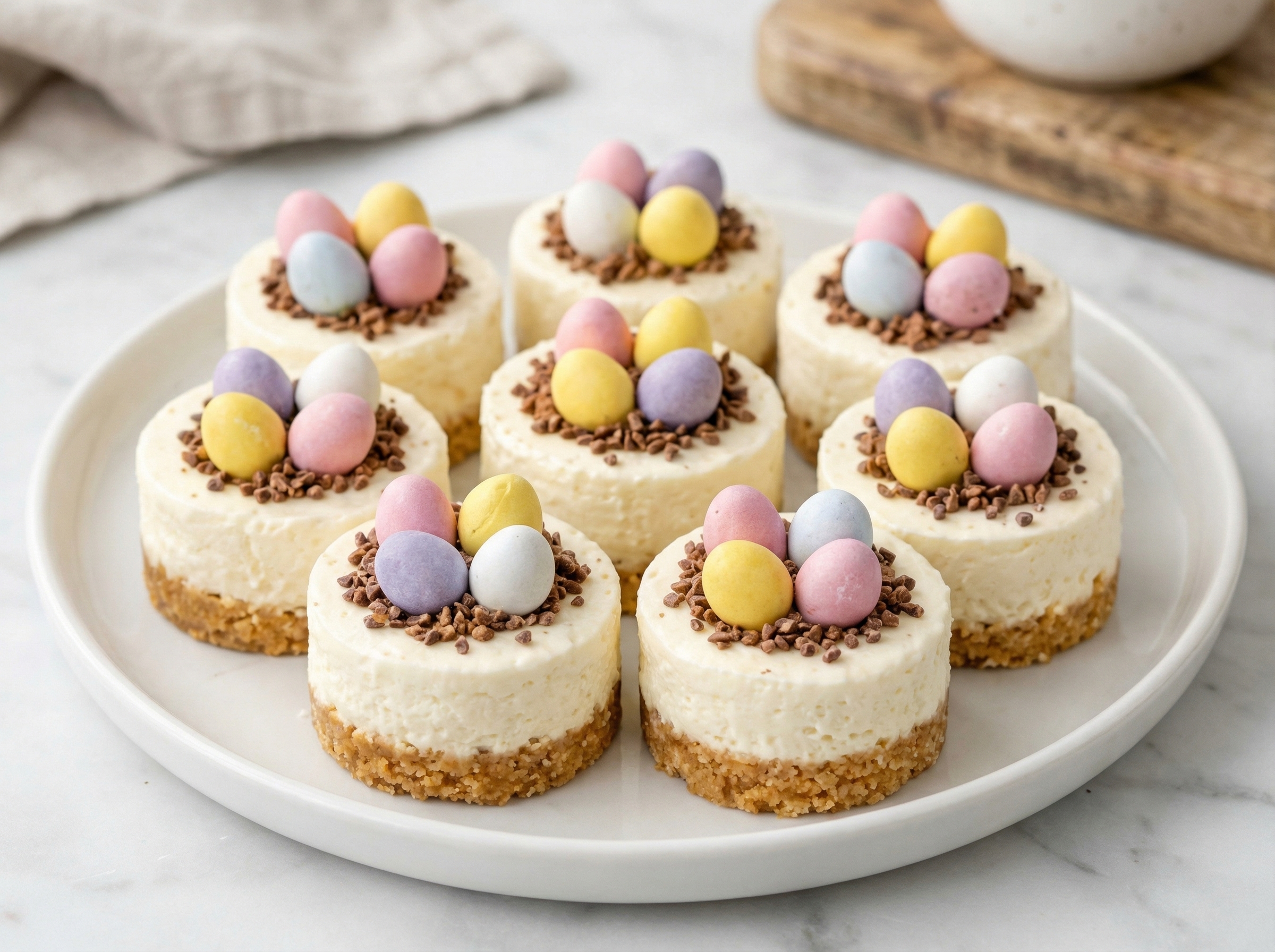 - Mini candy-coated chocolate eggs (pastel colors, about 3 per mini cheesecake)