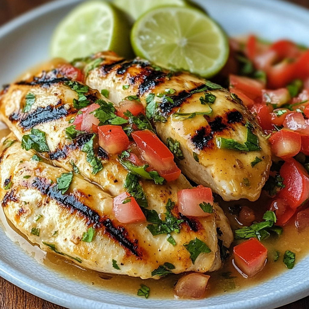 - Serve: Once the chicken is done, let it rest for a few minutes. Then, serve it topped with the diced tomatoes and chopped cilantro, with lime wedges on the side for some extra zing.