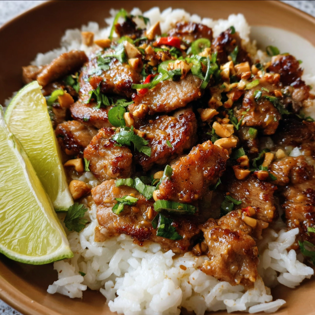 Easy Ginger Lime Pork with Creamy Coconut Rice Recipe