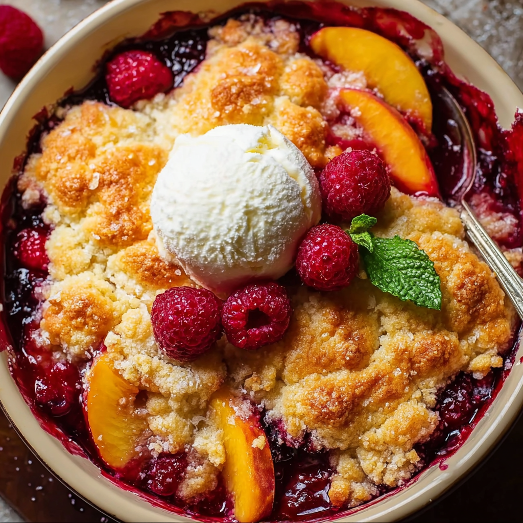 Sweet and Juicy Peach Raspberry Cobbler Recipe