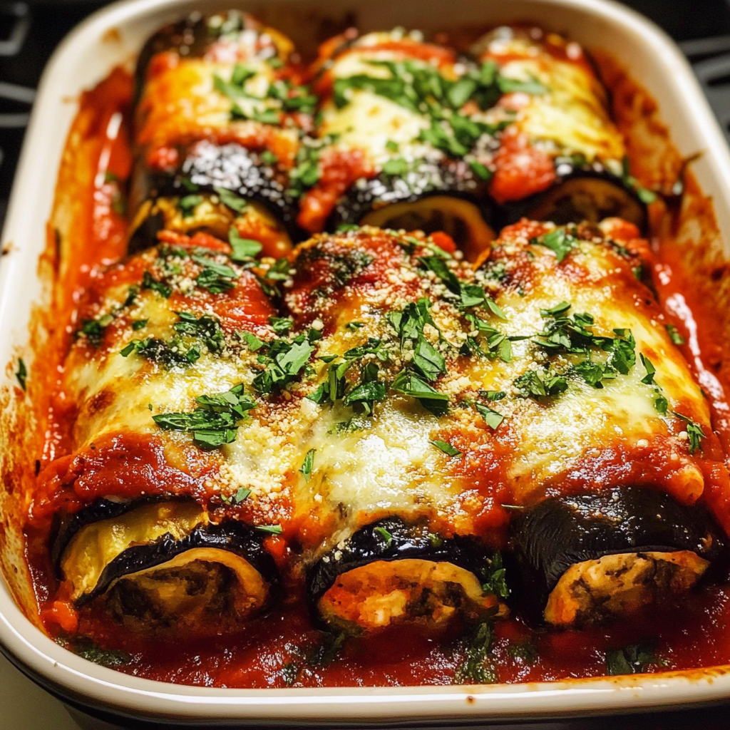 - Now, enjoy your cheesy, savory Eggplant Rollatini warm and take that first delightful bite!