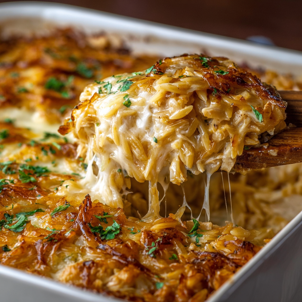 Your New Favorite Recipe: French Onion Chicken Orzo Casserole