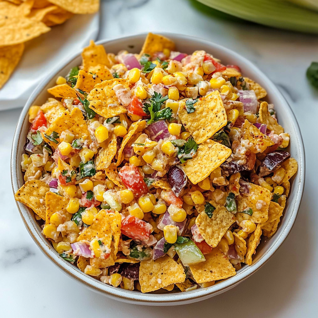 Hello, lovely foodies! Are you ready for a salad that’s not just your average bowl of greens? I’m talking about a Frito Corn Salad that’s bursting with colorful veggies, a creamy dressing, and of course, that delightful crunch from the Frito chips! This dish has a special place in my heart (and stomach!). It’s perfect for picnics, potlucks, or just to make your family dinners a bit more exciting. Let’s dive into this delicious recipe together!