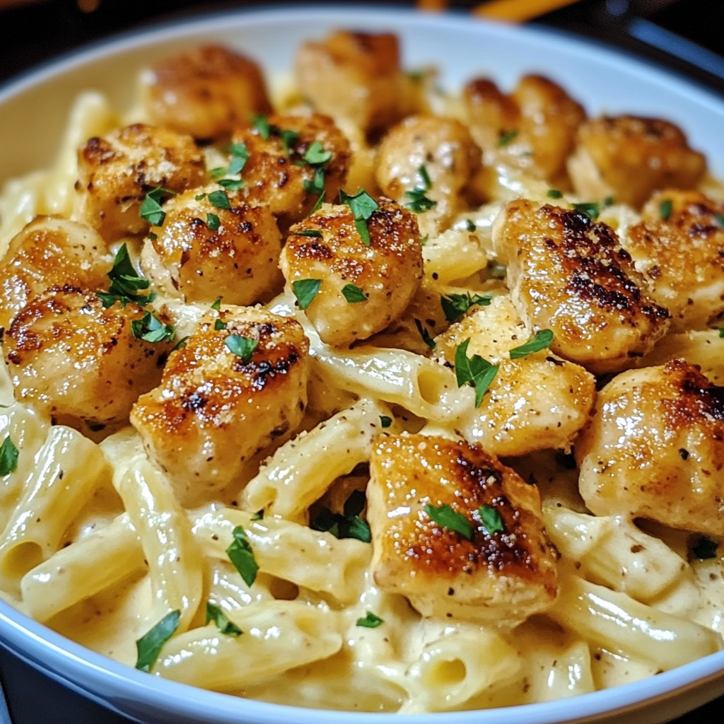 Garlic Butter Chicken Bites with Creamy Parmesan Pasta Recipe