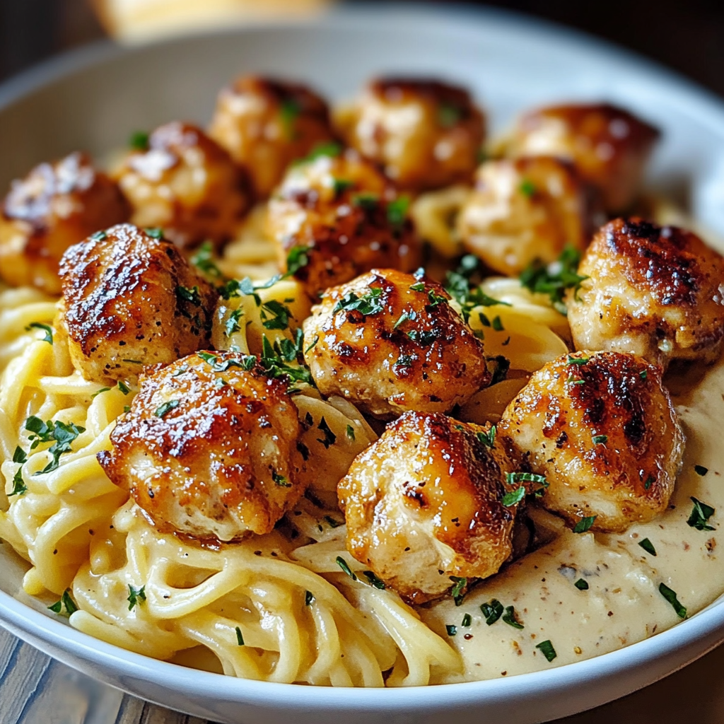 Garlic Butter Chicken Bites with Creamy Pasta Recipe