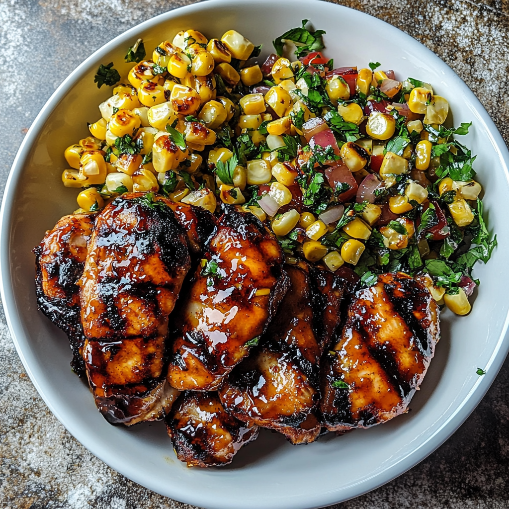 This meal doesn’t just taste fantastic; it’s also packed with benefits! Chicken thighs are a great source of protein, which is essential for muscle building and repair. When you grill instead of fry, you save on unnecessary fats, making it a healthier option. The fresh corn salad is loaded with vitamins and fiber, thanks to the colorful veggies—it’s like a rainbow of nutrients on your plate! And the lime juice gives a zing of vitamin C to keep your immune system happy.