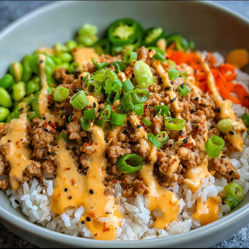 Delicious Ground Turkey Rice Bowls with Bang Bang Sauce Recipe