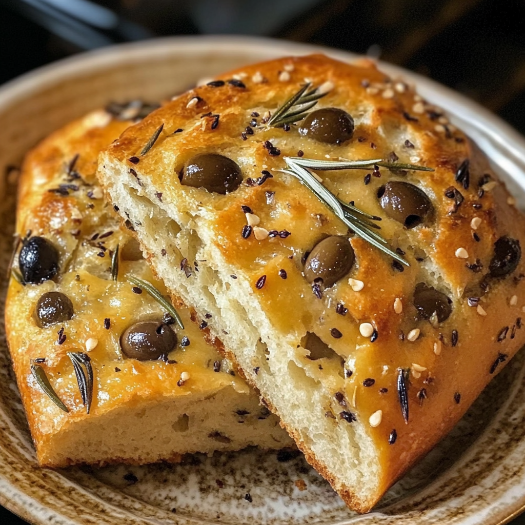 - Topping Time: If you’re using sesame seeds, sprinkle them over the top and gently press them down into the dough. Drizzle with olive oil and toss on some fresh rosemary for that extra flavor.