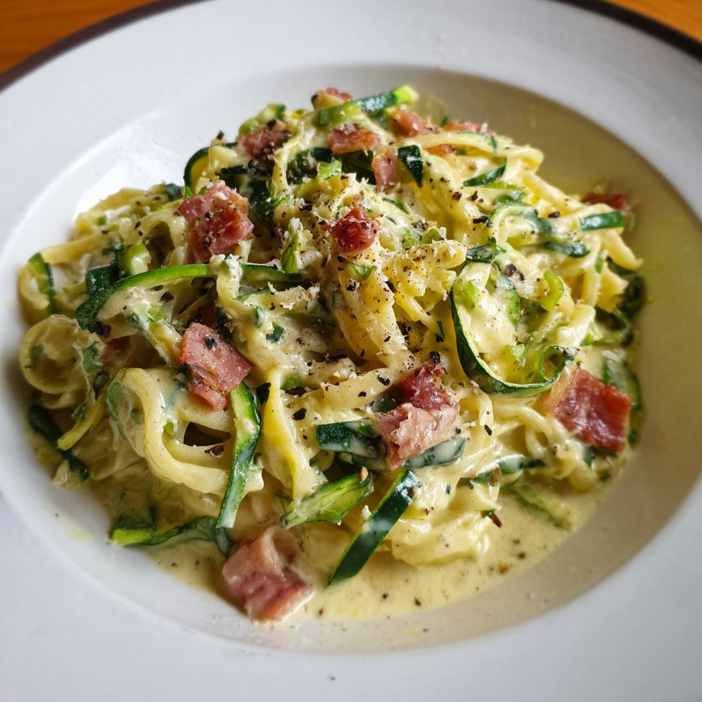 Hi There! Let’s Make a Light and Delicious Courgette Noodle Carbonara