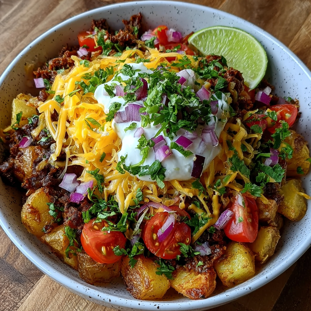 Hey there! Do you ever feel like switching up your dinner game with something hearty and absolutely delicious? If yes, I’m here to introduce you to my favorite Loaded Potato Taco Bowl. It’s like a fiesta in a bowl—crunchy roasted potatoes, seasoned beef, fresh toppings, and a zesty lime squeeze to tie it all together. Trust me, your taste buds are going to dance with joy!