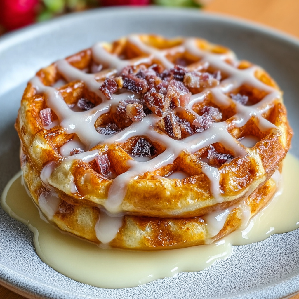 - Drizzle your sugar-free glaze over the stacked chaffles—you deserve that sweetness!