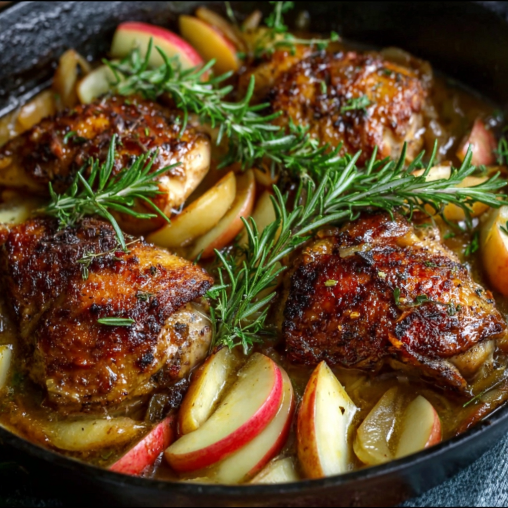 Let’s chat a bit about what makes this dish not only tasty but also a bit healthier. Chicken thighs, though they have more fat than breasts, offer great flavor and higher iron content. Using olive oil instead of butter for cooking gives you a dose of healthy fats, which is always a win. Plus, apples are a fantastic source of dietary fiber and vitamin C. This dish is balanced—it provides protein, healthy fats, and carbs, making it quite nutritious!