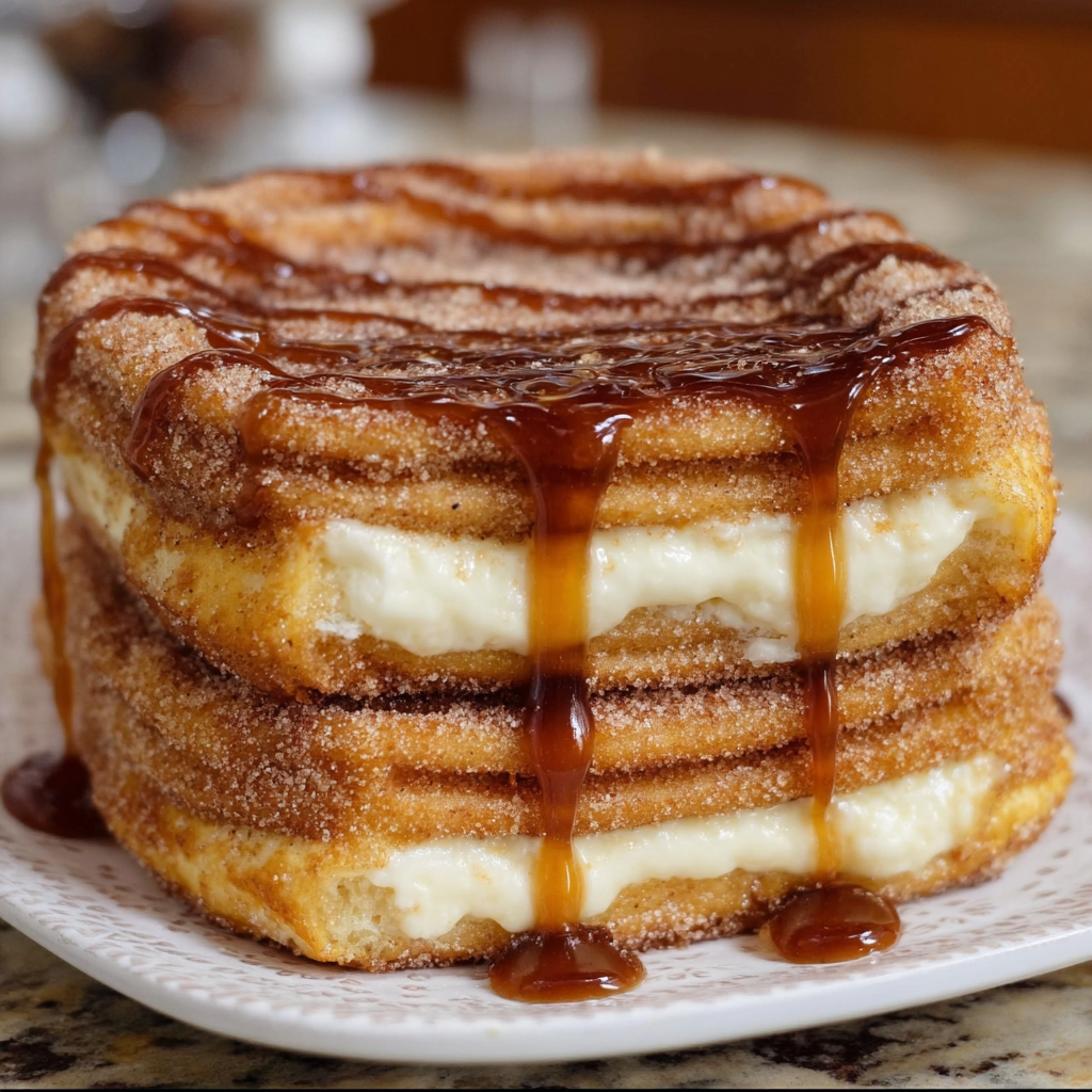 - Top it off with the remaining churro dough, sealing the edges gently to tuck that cheesecake goodness inside.