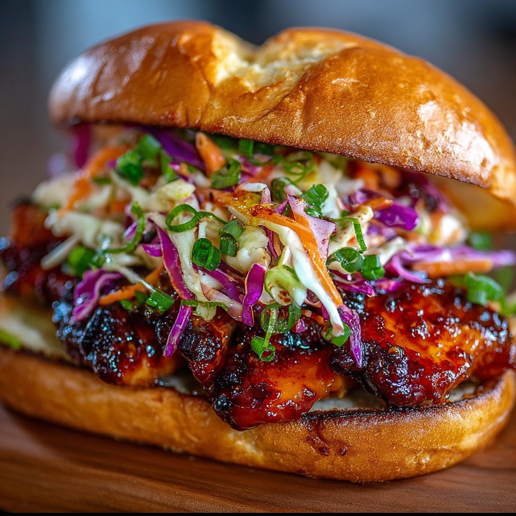 - Assemble the sandwich: Grab your bottom bun, pile on those delicious glazed chicken pieces, and add a generous helping of slaw. Top it off with the other half of the bun and voilà—your Korean BBQ Chicken Sandwich is ready to go!