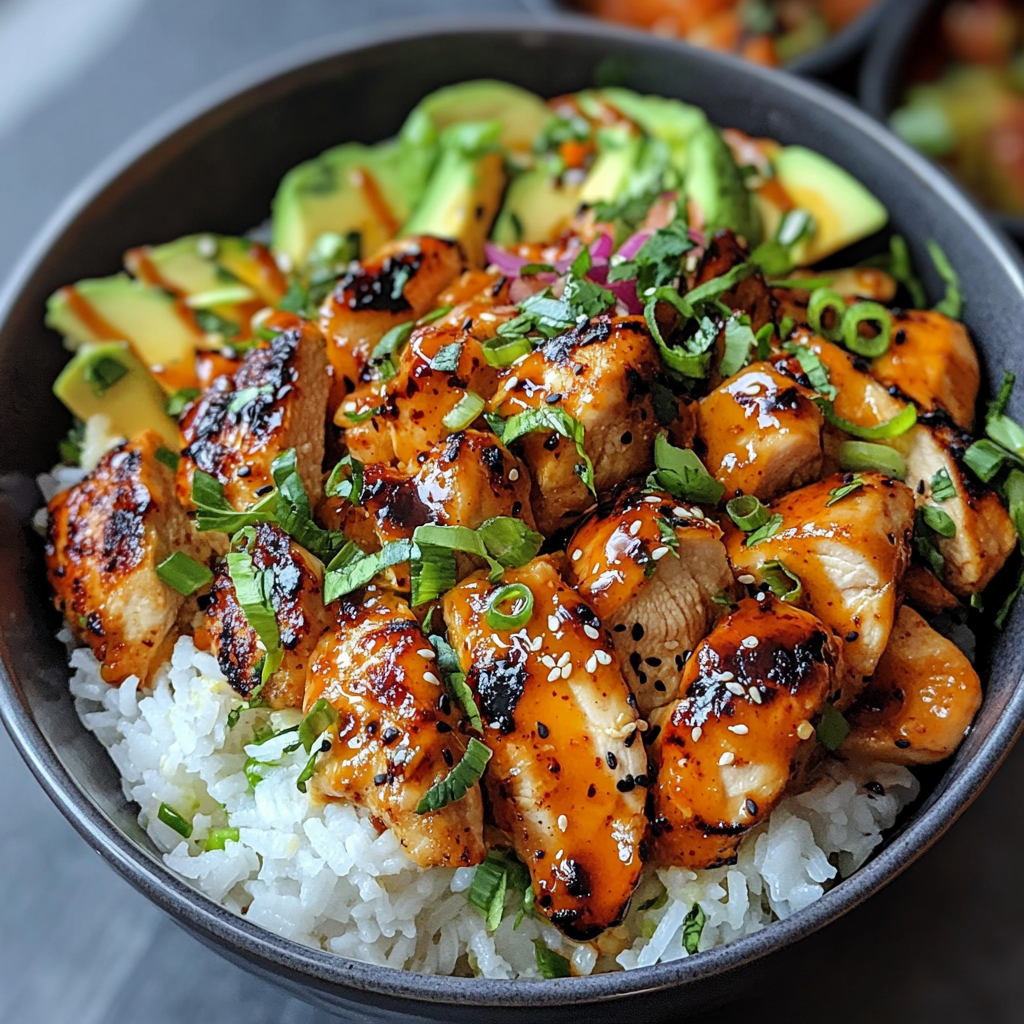 - Assemble Bowls: Grab your serving bowls and add a generous scoop of coconut rice as the base. Arrange the spicy maple chicken right on top!