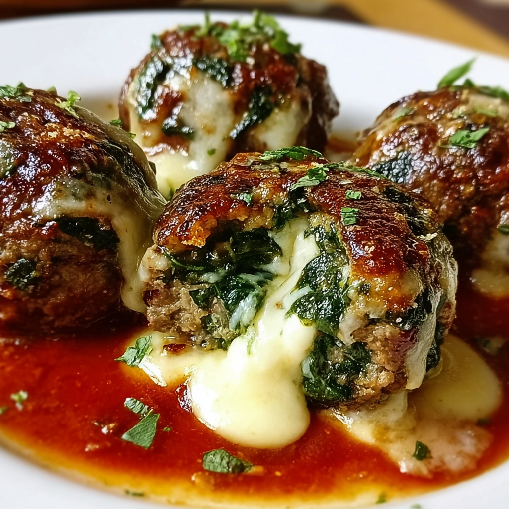 Juicy Spinach Garlic Meatballs Stuffed with Mozzarella Recipe