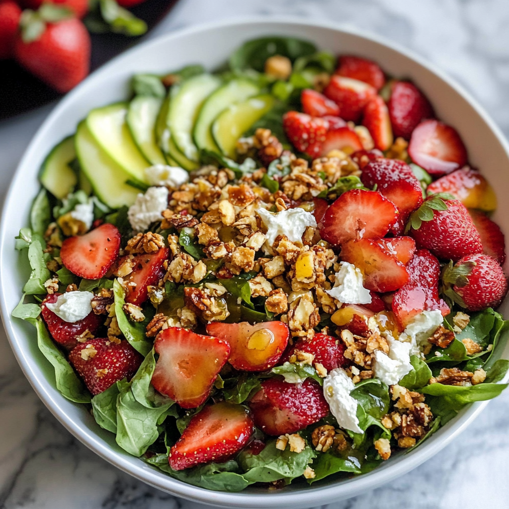 Let’s talk about the amazing health benefits packed in this salad! Strawberries are a fantastic source of vitamin C and antioxidants, which help boost the immune system and fight inflammation. The nuts you add provide healthy fats and protein, while the greens are rich in fiber, keeping you feeling full and satisfied. And don’t forget the crunch—often coming from ingredients like nuts and seeds—that adds texture and nutrition to your plate!
