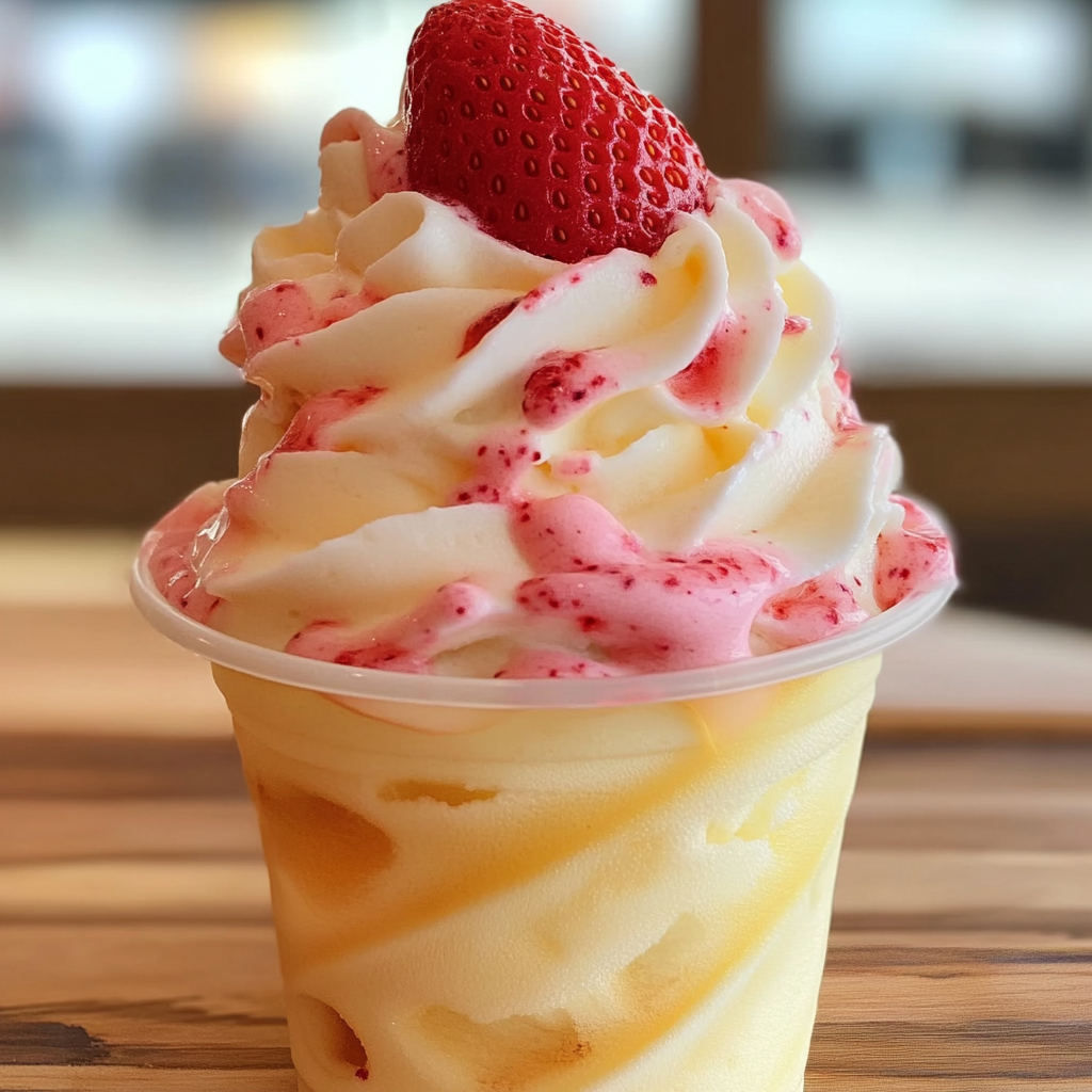 - Serve immediately and enjoy this delightful Strawberry Dole Whip that’s sure to make your taste buds dance!