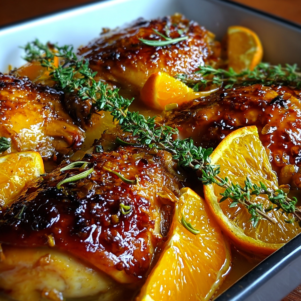 - Once cooked, take the chicken out and let it rest for about 5 minutes. This helps keep all the juices inside. Garnish with extra thyme and orange slices if you wish, and then serve warm. Yum!