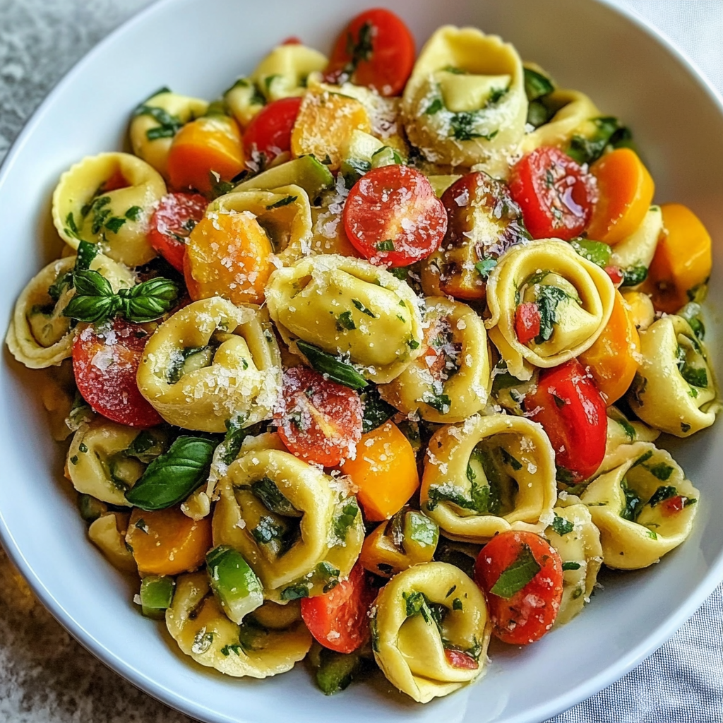 Not only is this dish delicious, but it’s also packed with nutrients! Fresh vegetables like zucchini, bell peppers, and spinach provide a large dose of vitamins, minerals, and antioxidants. Spinach is particularly rich in iron and Vitamin K, while tomatoes are great for heart health and skin due to their high lycopene content. Plus, tortellini (especially if you choose whole grain) offers a good source of carbohydrates for energy. It’s a colorful, healthful plate that’s perfect for those sunny days!